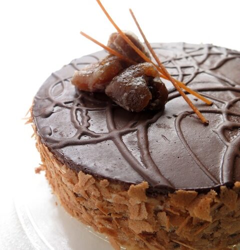 Prăjitură cu Ciocolată, Cips de Biscuiți și Castane Confiate